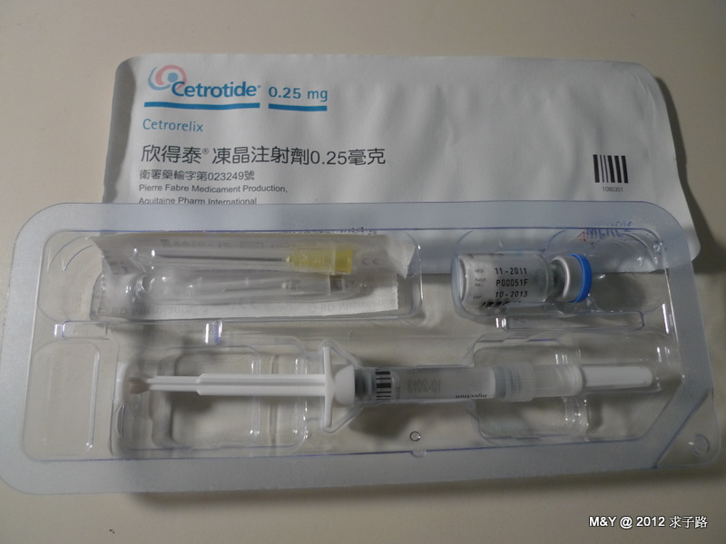所以今天FSH減為150U,加打一支欣得泰<<促性腺釋放激素拮抗劑 (GnRH-antagonist),作用在腦下垂體前葉的促性腺釋放激素 (GnRH) 接受體,快速的產生抑制黃體生成激素 (LH) 及濾泡刺激激素 (FSH) 分泌作用,延緩黃體生成激素的分泌高峰,因而延緩排卵作用,預防早發性排出不成熟卵。(白話就是避免卵巢提早排卵,那一切就前功盡棄了)