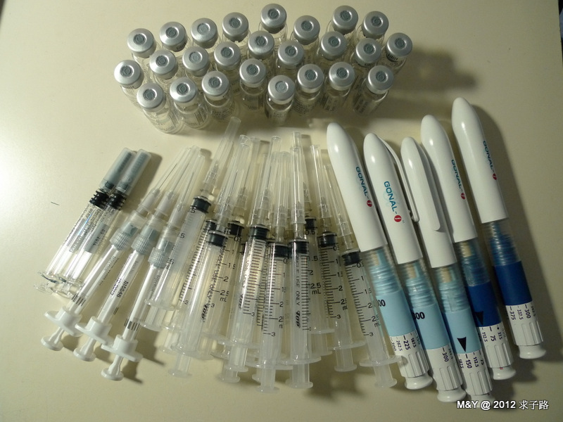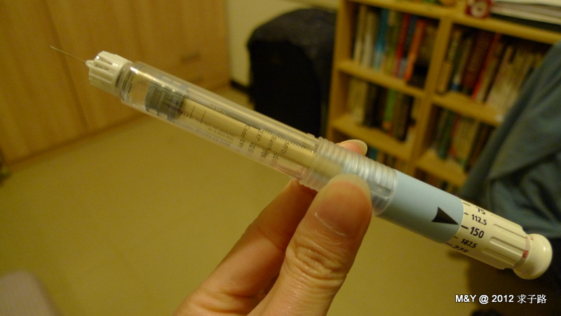 Day4。12/9 早上打2支美諾孕(HMG) & 晚上1支果納芬(FSH)150U