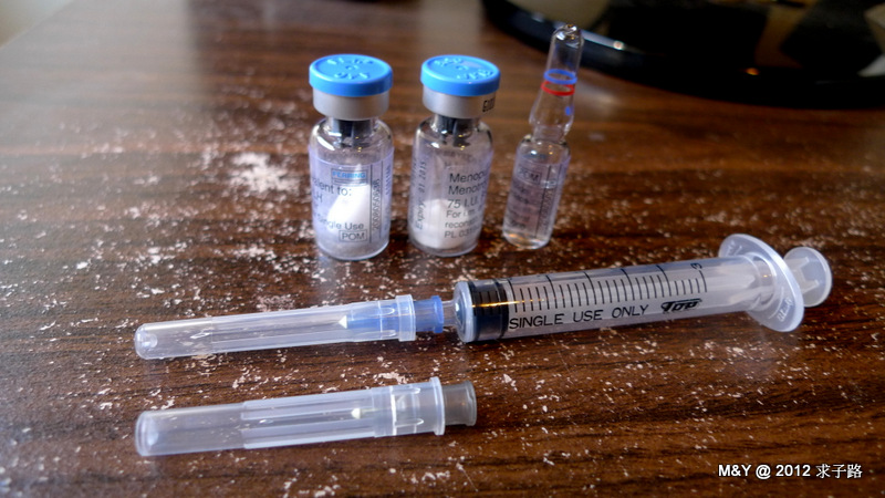 Day3。12/8 早上打2支美諾孕(HMG) & 晚上1支果納芬(FSH)150U