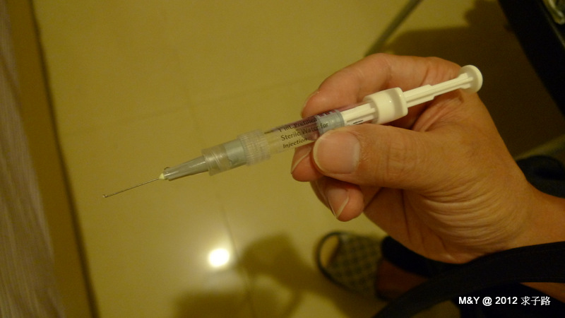 早上第一次自己打HMG,深呼吸 斜斜地刺進去 打進去 抽出來。贊!一氣喝成!!